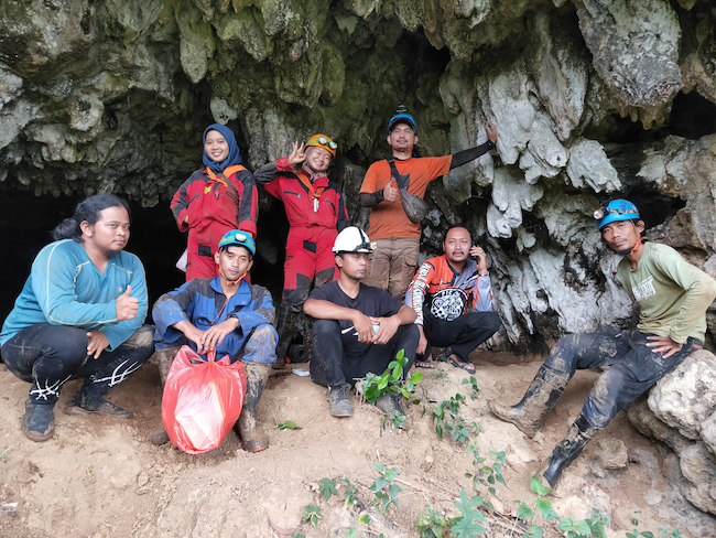 At the entrance to the Trenggalek district cave. Expedition leader Jhe Mukti on the right / Jhe Mukti)