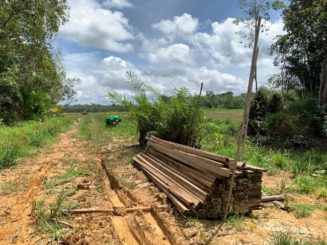 In the past, this was the habitat of a huge variety of trees and forest animals. Now, all that remains is grass. This land is being prepared for a new plantation.